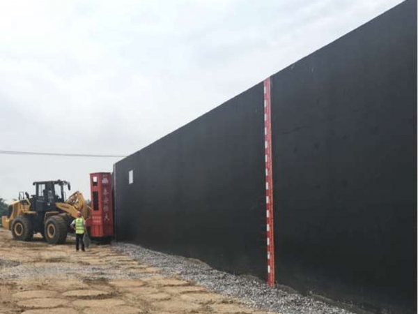 層厚標記采用定制15cm紅白相間的反光貼紙控制層厚,并公示臺背責(zé)任卡,使用高速液壓夯實機進行夯實,提高涵背填筑質(zhì)量。